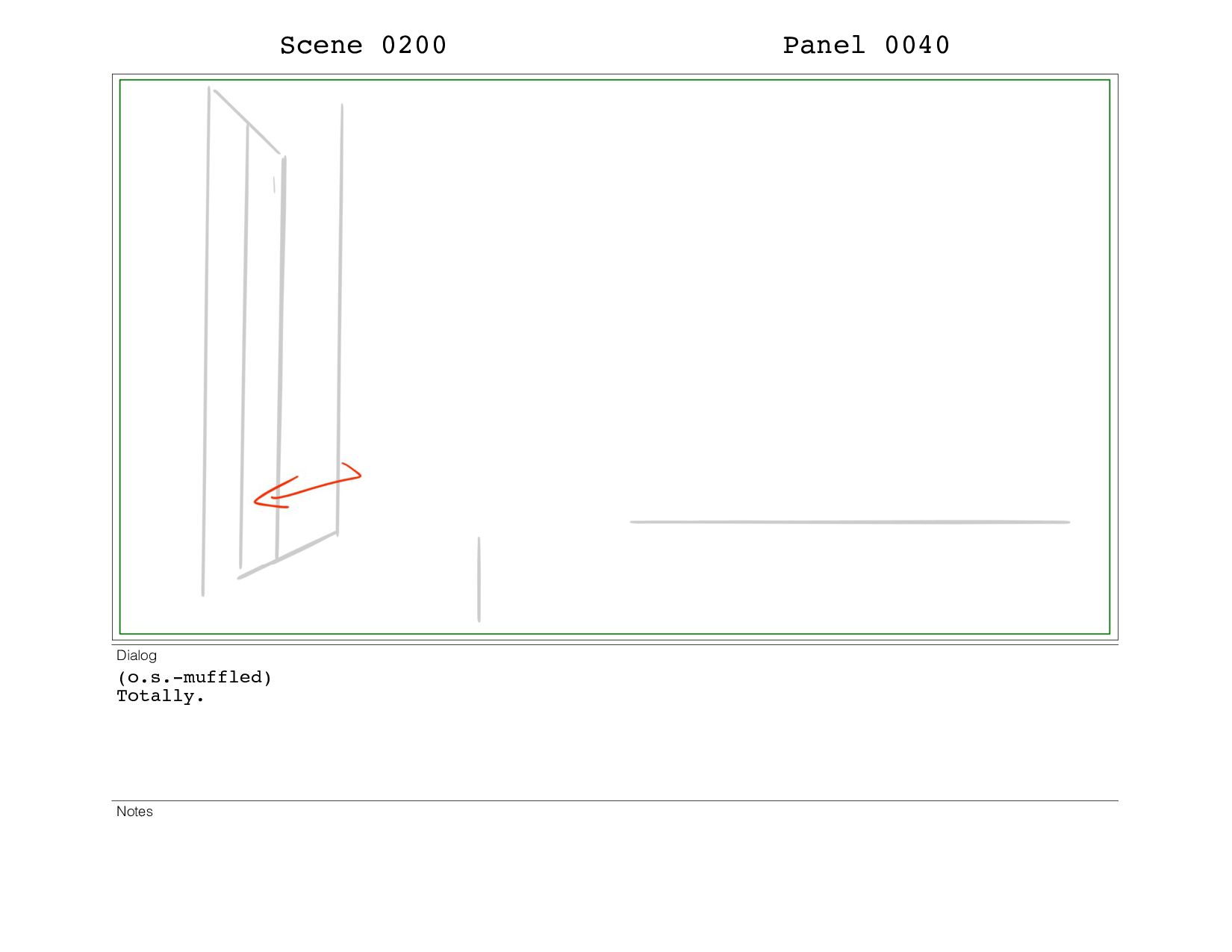 Scene 0200 Panel 0040 Dialog (o.s.-muffled) Totally. Notes