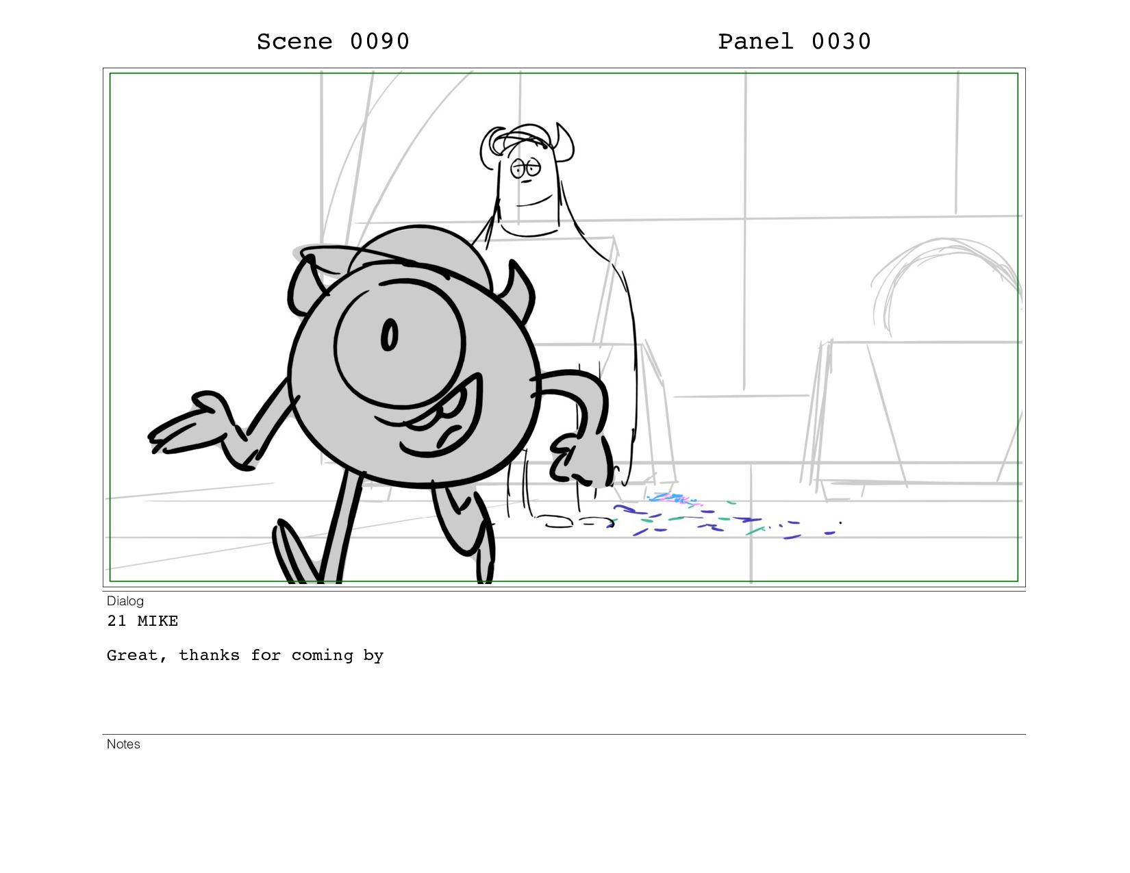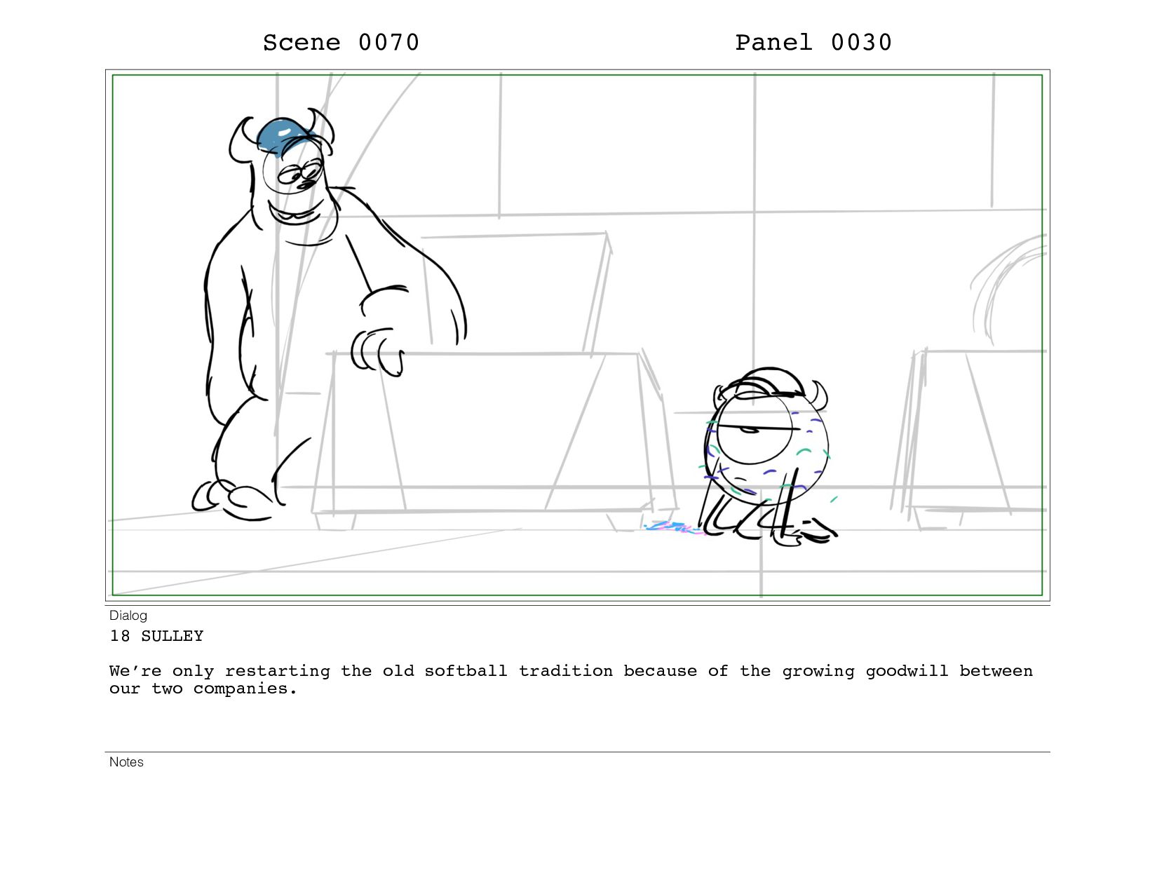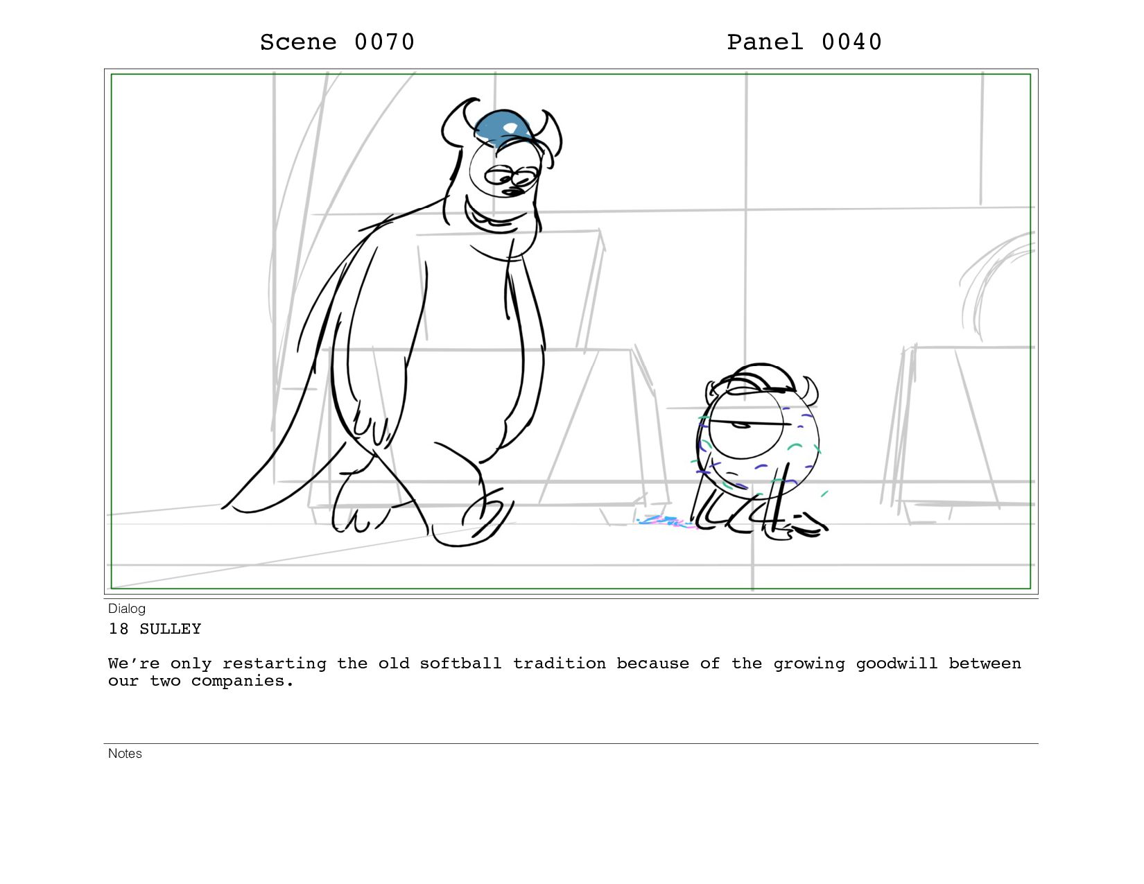 Scene 0070 Panel 0080 Dialog 18 SULLEY Friendly goodwill. Notes