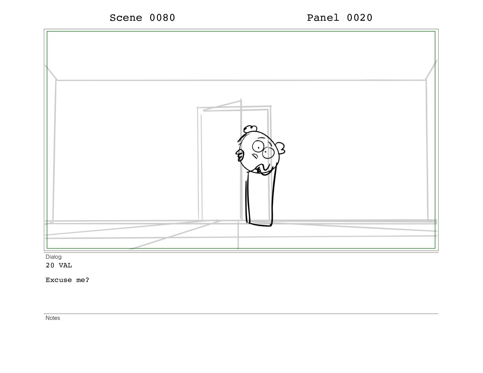 Scene 0080 Panel 0020 Dialog 20 VAL Excuse me? Notes