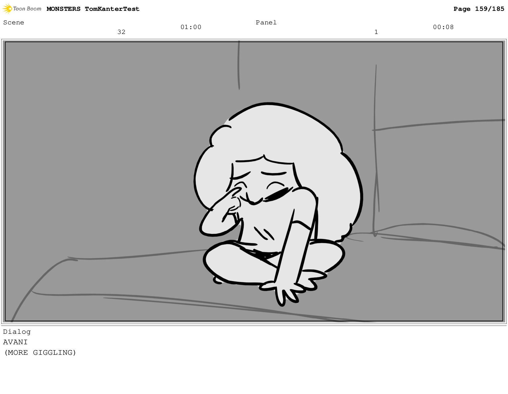 Scene 32 01:00 Panel 1 00:08 Dialog AVANI (MORE GIGGLING)