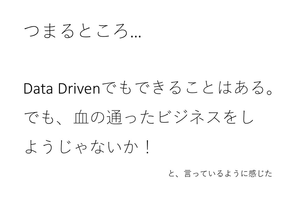 つまるところ… Data Drivenでもできることはある。 でも、血の通ったビジネスをし ようじゃないか! と、言っているように感じた