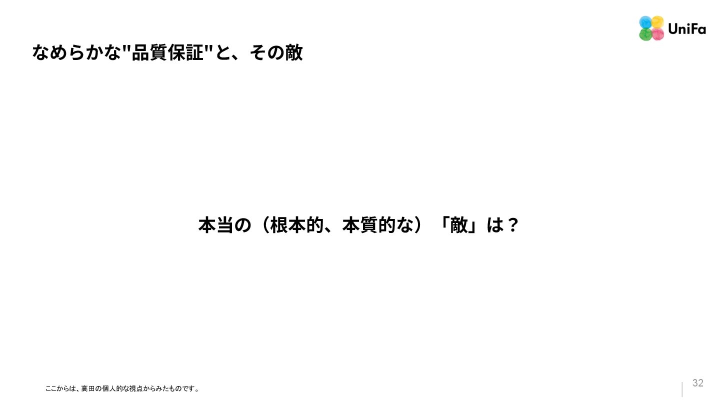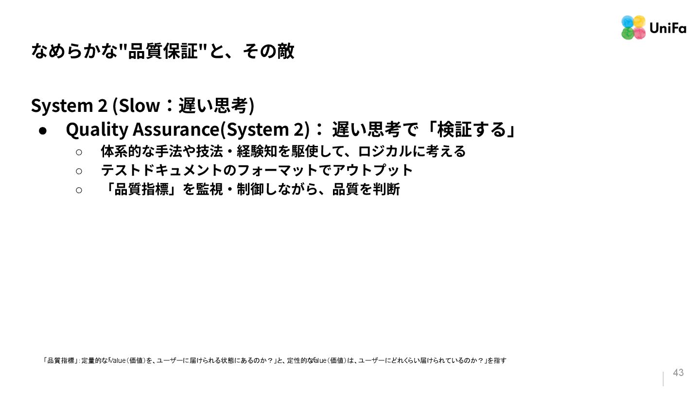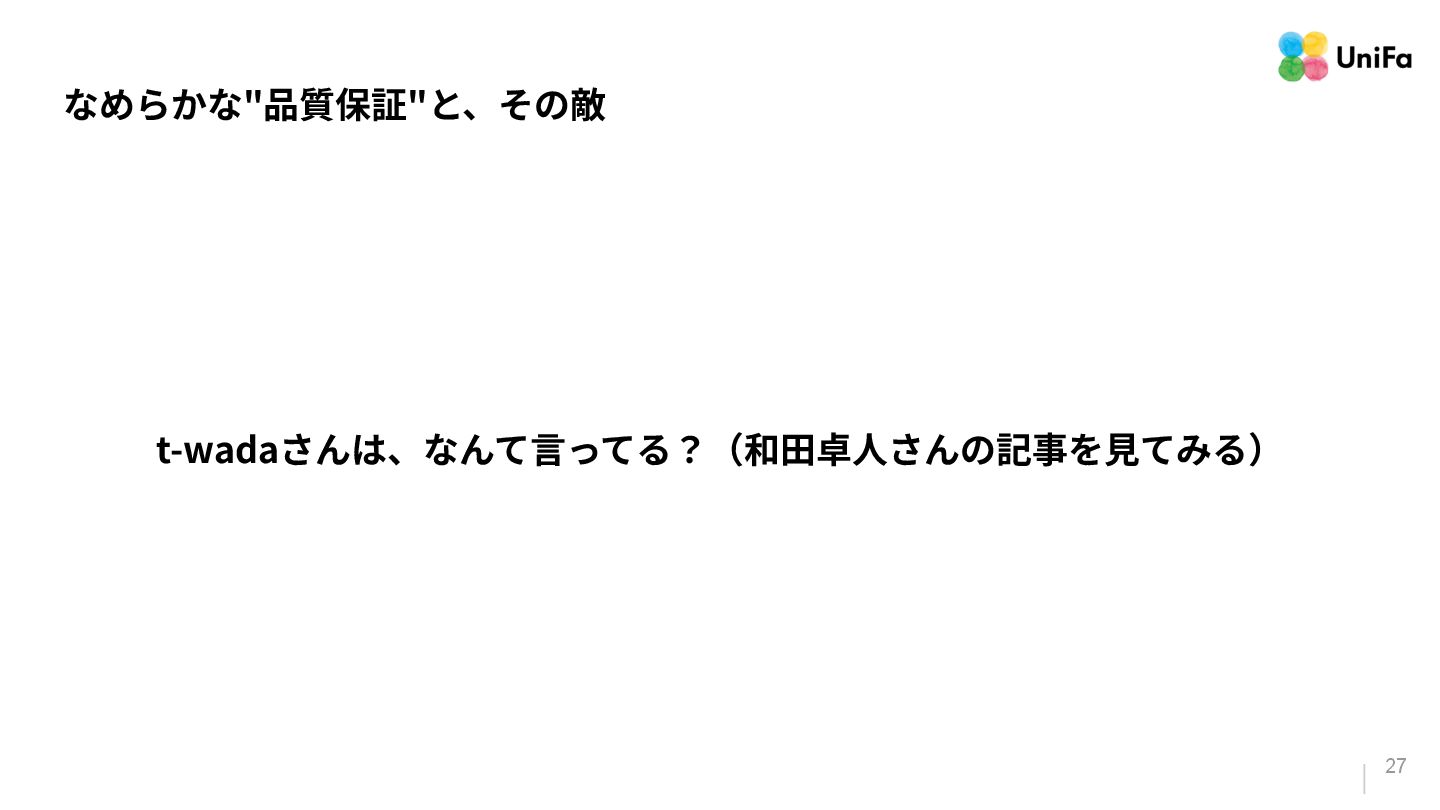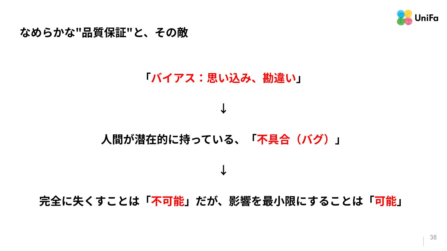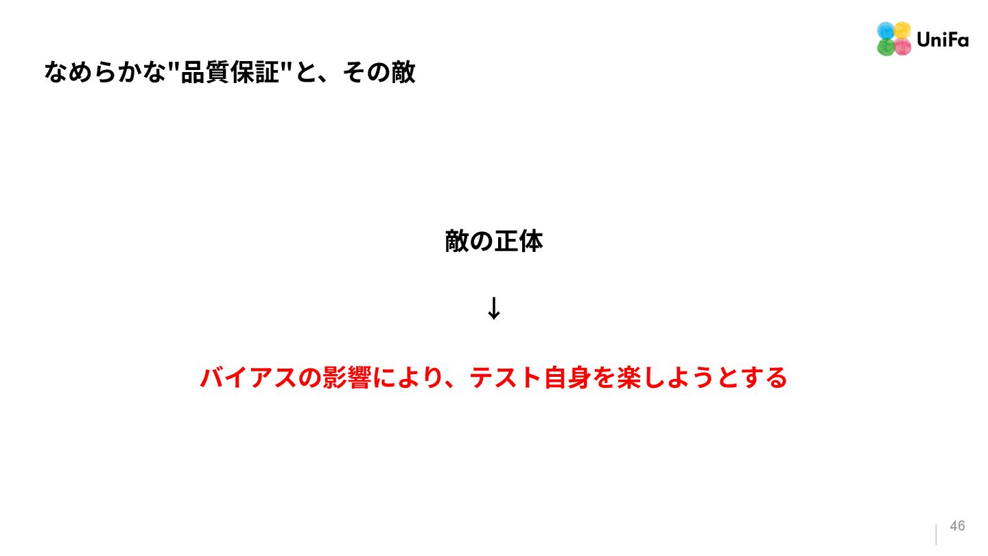 i. 業務側ペルソナ ii. 開発側ステークホルダー 2. Purpose/Causality(⽬的/因果関係)≒ Why? (条件や性質) a. テストが判定(Oracle)できる形にした“チェック可能な不変条件‧性質” i. 「なぜその結果になるべきか」(因果関係) ii. 「なぜその順序で操作するのか」(時間的な順番) iii. 「どのルールがどれに優先するのか」(優先順位)