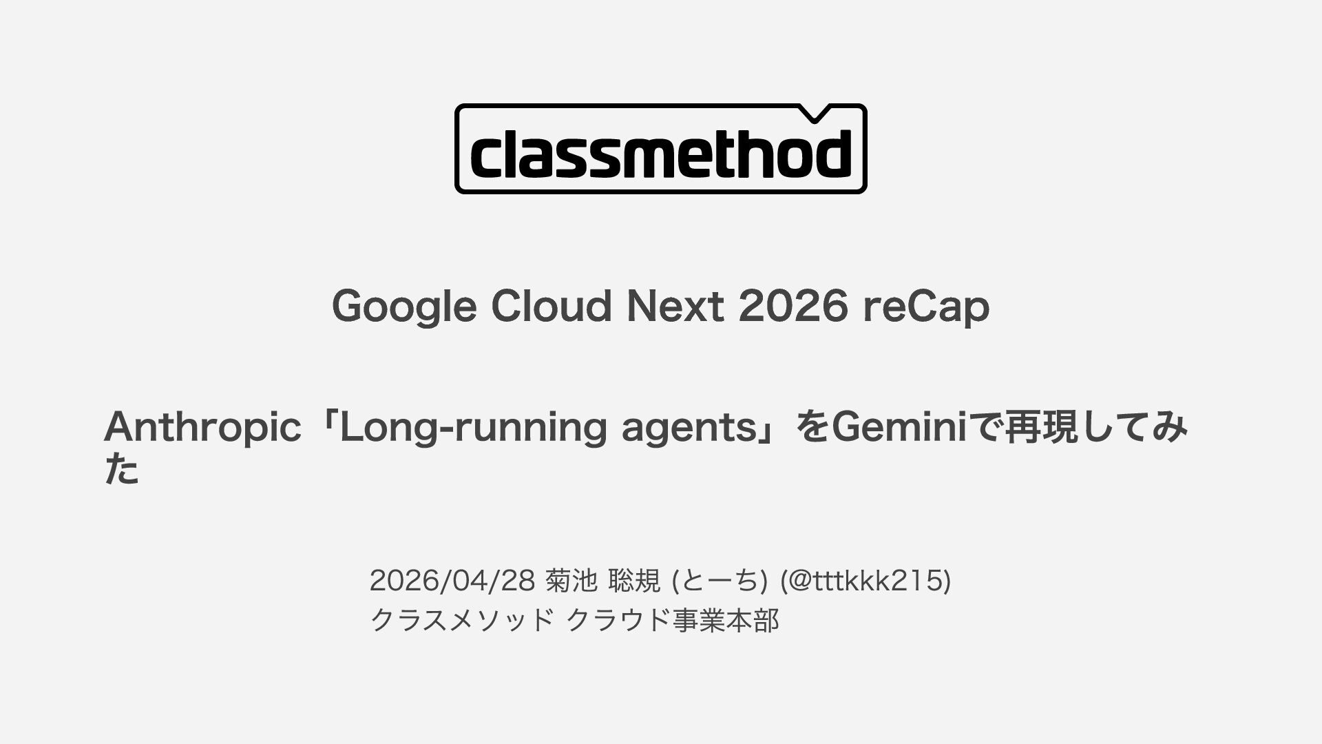 Google Cloud Next 2026 reCap Anthropic「Long-running agents」をGeminiで再現してみ た 2026/04/28 菊池