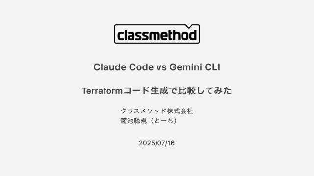 Claude Code vs Gemini CLI Terraformコード生成で比較してみた クラスメソッド株式会社 菊池聡規(とーち) 2025/07/16