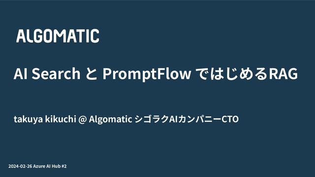 takuya kikuchi @ Algomatic シゴラクAIカンパニーCTO 2024-02-26 Azure AI Hub #2