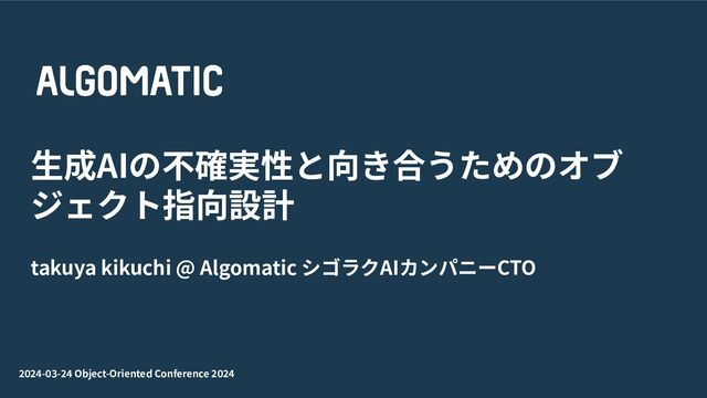 takuya kikuchi @ Algomatic シゴラクAIカンパニーCTO 2024-03-24 Object-Oriented Conference 2024 ⽣成AIの不確実性と向き合うためのオブ