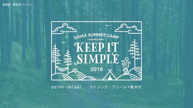 Gaiax Summer Camp 2019 KEEP IT SIMPLE 9/6-7,2019 @Karuizawa https://www.facebook.com/events/627301841095953/