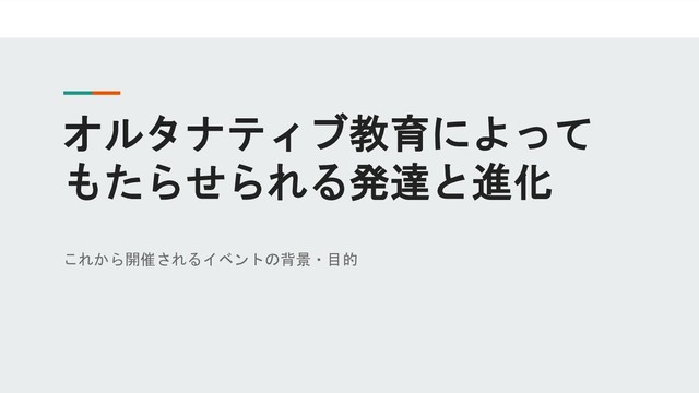 オルタナティブ教育によって もたらせられる発達と進化 これから開催されるイベントの背景・目的