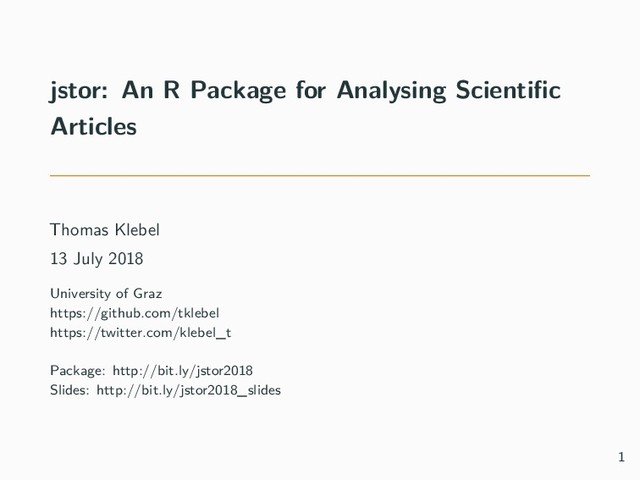 13 July 2018 University of Graz https://github.com/tklebel https://twitter.com/klebel_t Package: http://bit.ly/jstor2018 Slides: http://bit.ly/jstor2018_slides 1