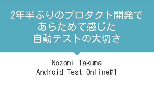 2年半ぶりのプロダクト開発で あらためて感じた 自動テストの大切さ Nozomi Takuma Android Test Online#1