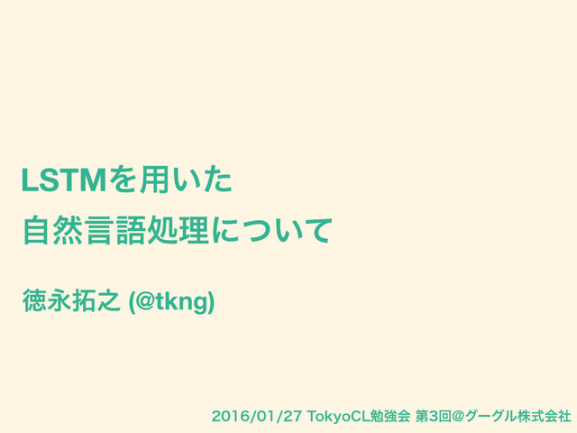LSTMΛ༻͍ͨ ࣗવݴޠॲཧʹ͍ͭͯ ಙӬ೭ (@tkng) 5PLZP$-ษڧձୈճ!άʔάϧגࣜձࣾ