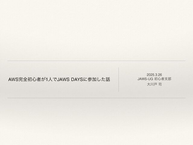 ज़ަྲྀਓࡐަྲྀ͕ຖिͷΑ͏ʹߦΘΕɺAWSϢʔβʔͷٕज़ྗ্͓ΑͼϏδωεͷ ֦େʹد༩͍ͯ͠·͢ɻ JAWS DAYSओ࠵JAWS-UGɺޙԉΞϚκϯΣϒαʔϏε δϟύϯ߹ಉձࣾͰߦΘΕΔ JAWS-UG࠷େͷΠϕϯτͰ͢ɻશࠃͷJAWS-UGϝϯόʔ͕த৺ͱͳͬͯΠϕϯτͷ اըɺ४උΛߦ͍ɺ࠷৽ٕज़͔ΒϏδωεɺϥΠϑελΠϧͳͲAWSʹؔΘΔ෯͍ ςʔϚͰηογϣϯ͕༧ఆ͞Ε͍ͯ·͢ɻ AWSॳ৺ऀ͔Β্ڃऀ·ͰͷΤϯδχΞɺܦӦऀਓࣄɺϚʔέςΟϯάɺΤϯλʔϓϥ Πζ͔ΒελʔτΞοϓ ɺதখاۀͳͲ৬छۀଶɾձࣾنΛΘͣɺͨ͘͞Μͷํʹ ࢀՃ͍͚ͨͩΔΠϕϯτͰ͢ɻ