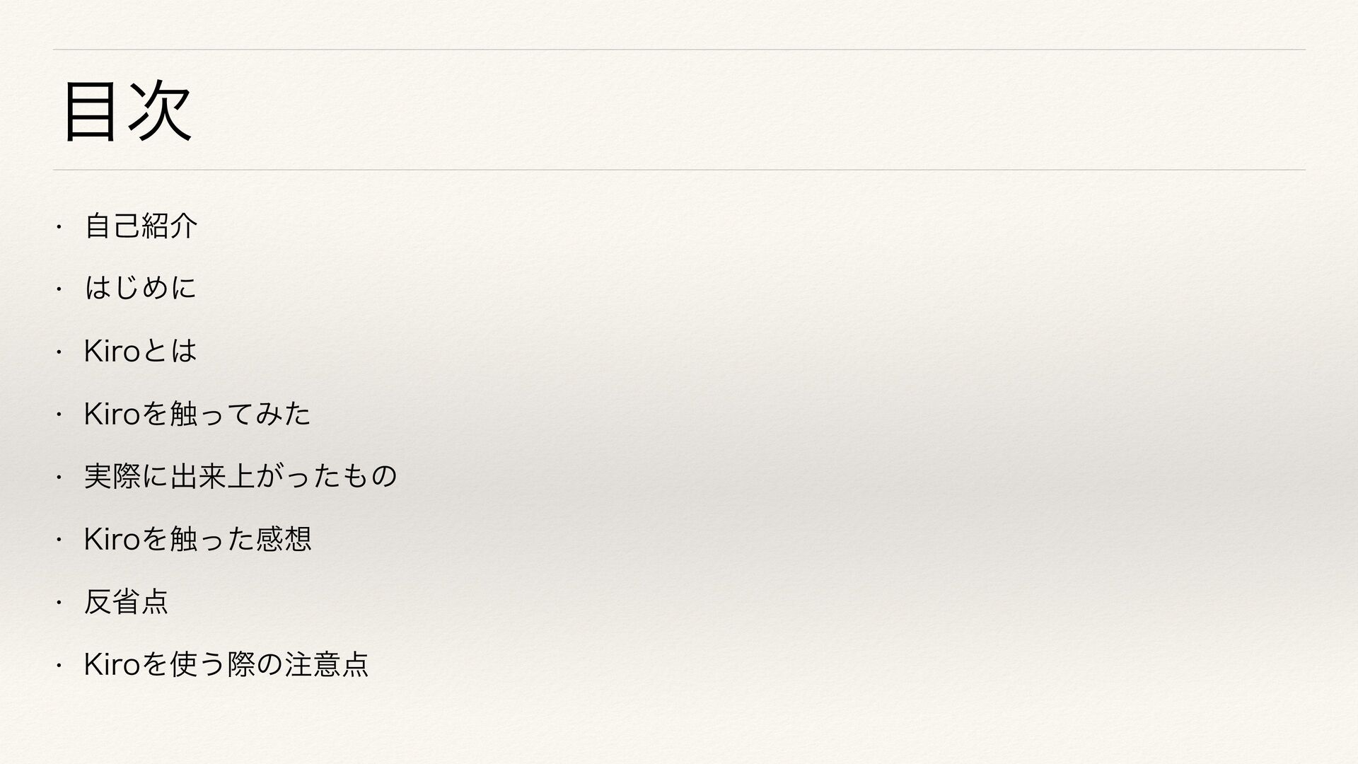 ࣍ • ࣗݾհ • ͡Ίʹ • ,JSPͱ • ,JSPΛ৮ͬͯΈͨ •