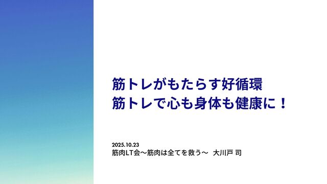 筋肉LT会~筋肉は全てを救う~ 大川戸 司 2025.10.23 筋トレがもたらす好循環 筋トレで心も身体も健康に!