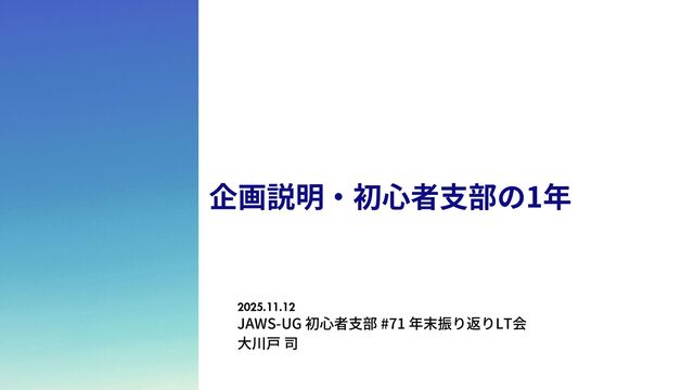 JAWS-UG 初心者支部 #71 年末振り返りLT会 大川戸 司 2025.11.12 企画説明・初心者支部の1年