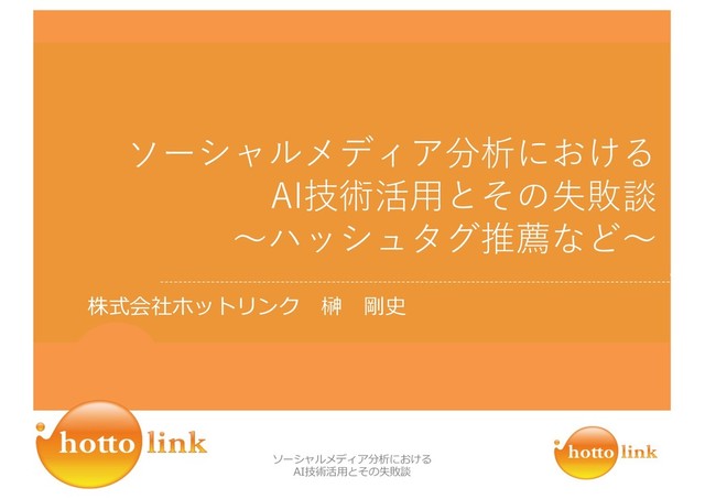 ソーシャルメディア分析におけるAI技術活用とその失敗談 第36回 Machine Learning 15minutes!にて