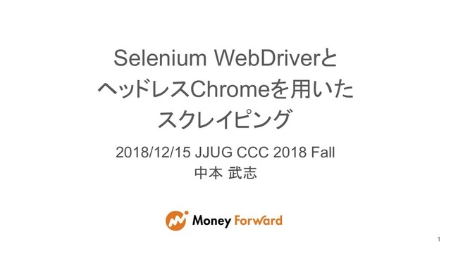 Selenium WebDriverと ヘッドレスChromeを用いた スクレイピング 2018/12/15 JJUG CCC 2018 Fall 中本