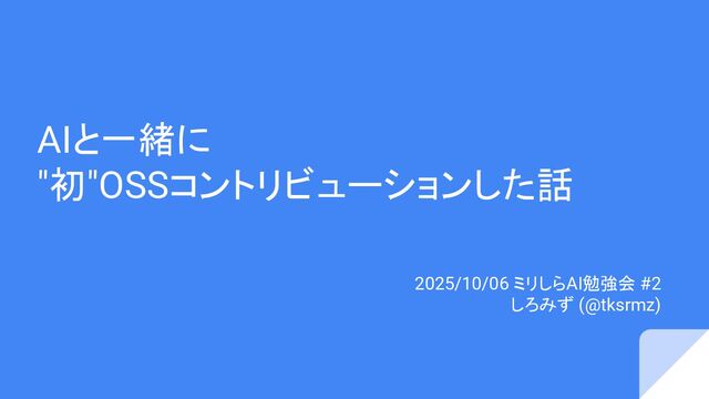 AIと一緒に "初"OSSコントリビューションした話 2025/10/06 ミリしらAI勉強会 #2 しろみず (@tksrmz)