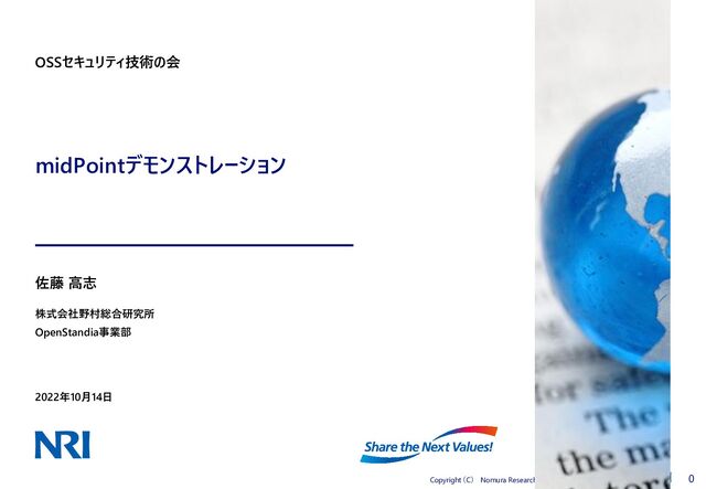 midPointデモンストレーション OSSセキュリティ技術の会 2022年10月14日 株式会社野村総合研究所 OpenStandia事業部 佐藤 高志