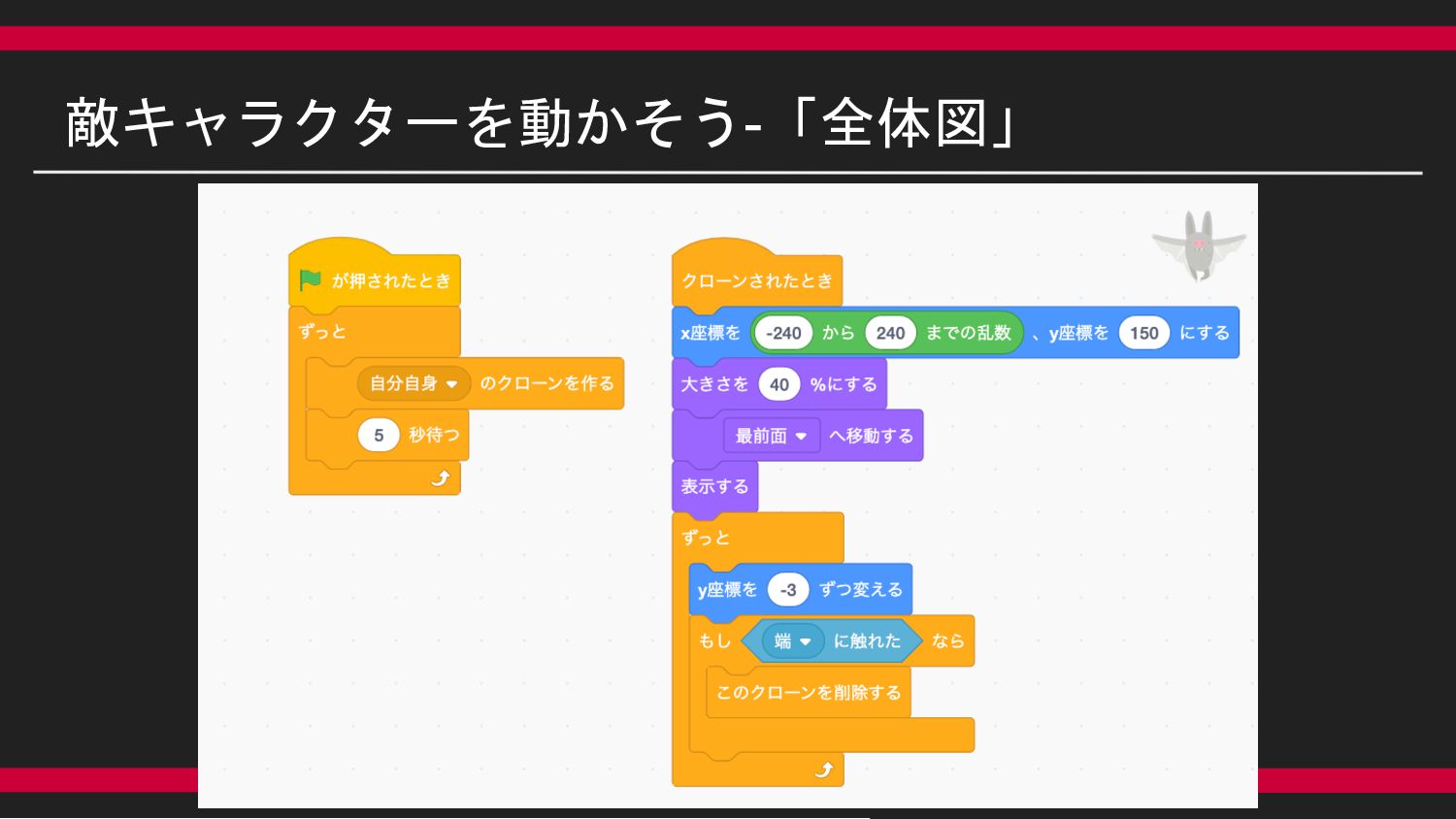 小学生向けの夏休み講座にて、Scrachを用いたシューティングゲーム講座を行った際の資料です。