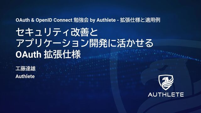 OAuth 2.0 にはさまざまな拡張仕様が存在します。本プレゼンテーションでは、「セキュリティ改善」と「アプリケーション開発」の 2 つの観点から、これからの OAuth/OIDC 適用に際しておすすめの仕様を紹介します。