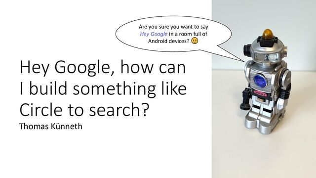 Some premium devices offer a cool feature called Circle to search. It lets you identify objects, songs, and more just by pointing your phone's camera. Now, what might be needed to build something like that? What technologies, libraries and tools could be involved? Let's find out. In this talk, I will introduce you to key components and show how to build a simplified version of Circle to Search.