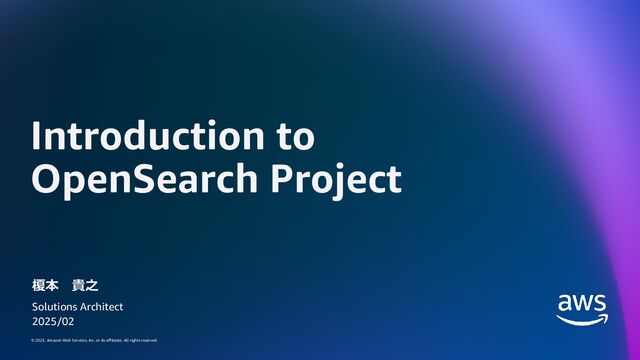 rights reserved. 25 See also • https://opensearch.org/blog/opensearch-project-roadmap-2024-2025/ • https://github.com/opensearch-project/OpenSearch/blob/main/CHANGELOG-3.0.md • https://github.com/orgs/opensearch-project/projects/206/views/11