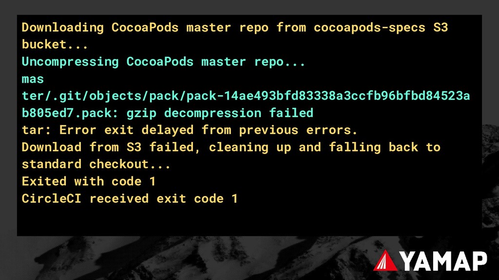 master repo... mas ter/.git/objects/pack/pack-14ae493bfd83338a3ccfb96bfbd84523a b805ed7.pack: gzip decompression failed tar: Error exit delayed from previous errors. Download from S3 failed, cleaning up and falling back to standard checkout... Exited with code 1 CircleCI received exit code 1