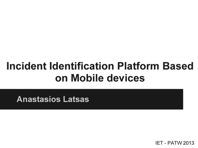 knowledge • Detect both static and evolving incidents • Web based platform (accessible) • Mobile clients for Android™ devices • Communication using open APIs and common protocols (HTTP) • Open source
