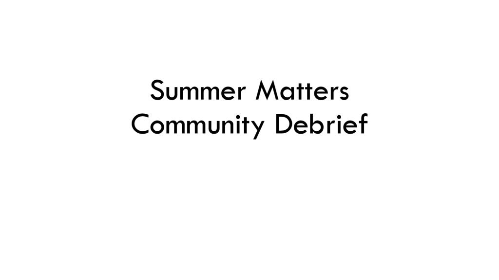 Summer Matters Community Debrief