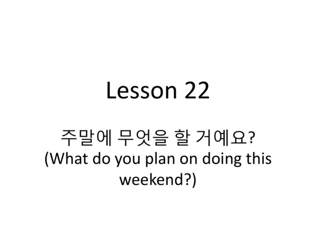Lesson 22 주말에 무엇을 할 거예요? (What do you plan