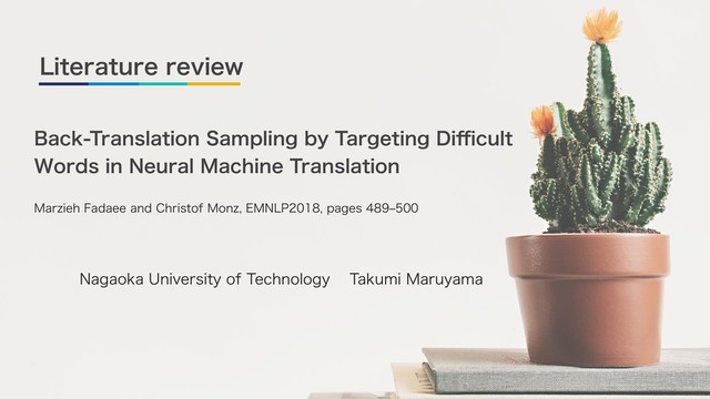 #BDL5SBOTMBUJPO4BNQMJOHCZ5BSHFUJOH%J⒏DVMU 8PSETJO/FVSBM.BDIJOF5SBOTMBUJPO .BS[JFI'BEBFFBOE$ISJTUPG.PO[ &./-1 QBHFTr -JUFSBUVSFSFWJFX /BHBPLB6OJWFSTJUZPG5FDIOPMPHZ5BLVNJ.BSVZBNB