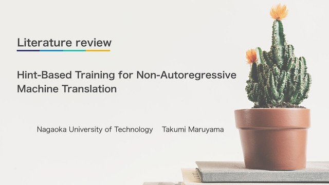 $PODMVTJPO ⾣"35ͷӅΕঢ়ଶऍ͔ΒzIJOUzΛಘΔֶशख๏ΛఏҊ ⾣8.5&O%F %F&Oʹ͓͍ͯ-45."35Λ্ճΔੑೳ ⾣/POBVUPSFHSFTTJWFNBDIJOFUSBOTMBUJPO /"35 ɾඪ༁ͷ࣭Λҡ࣋ͭͭ͠ɺਪ࣌ͷܭࢉ࣌ؒΛߴԽ