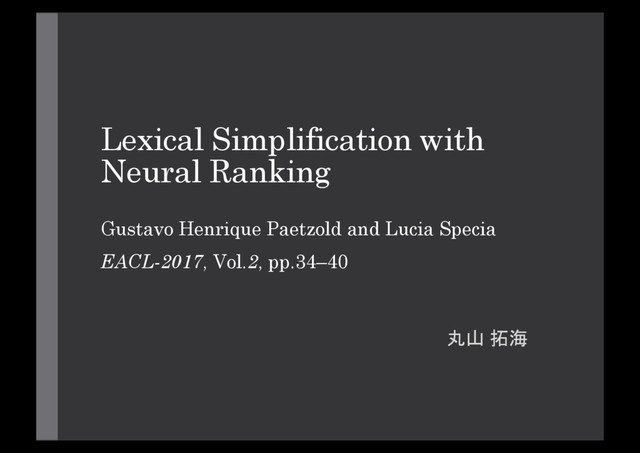 Lexical Simplification with Neural Ranking 丸山 拓海 Gustavo Henrique Paetzold