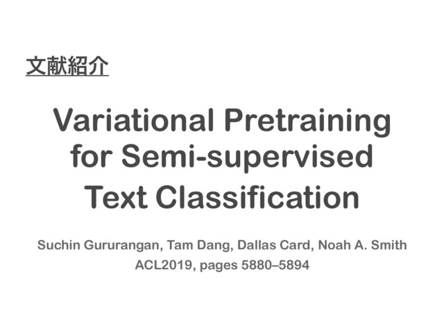Variational Pretraining for Semi-supervised Text Classification จݙհ Suchin Gururangan, Tam