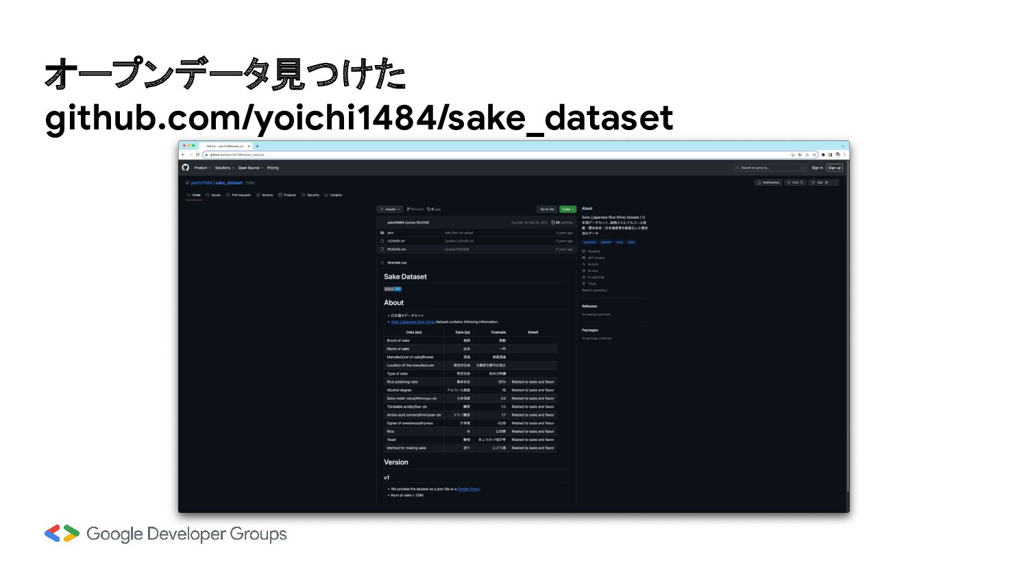 オープンデータ見つけた github.com/yoichi1484/sake_dataset