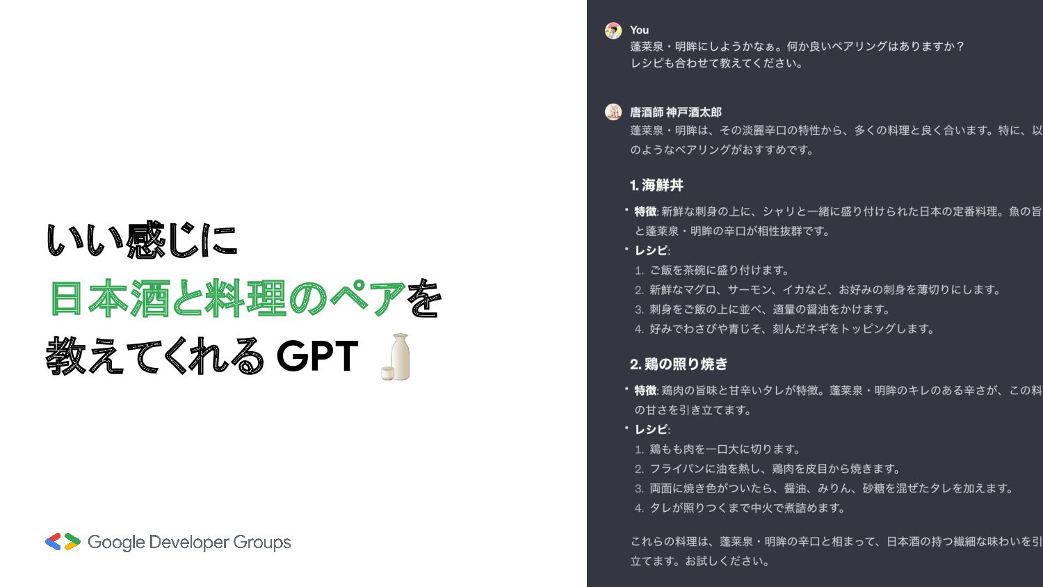 いい感じに 日本酒と料理のペアを 教えてくれる GPT 🍶