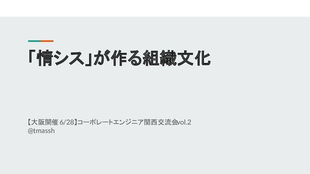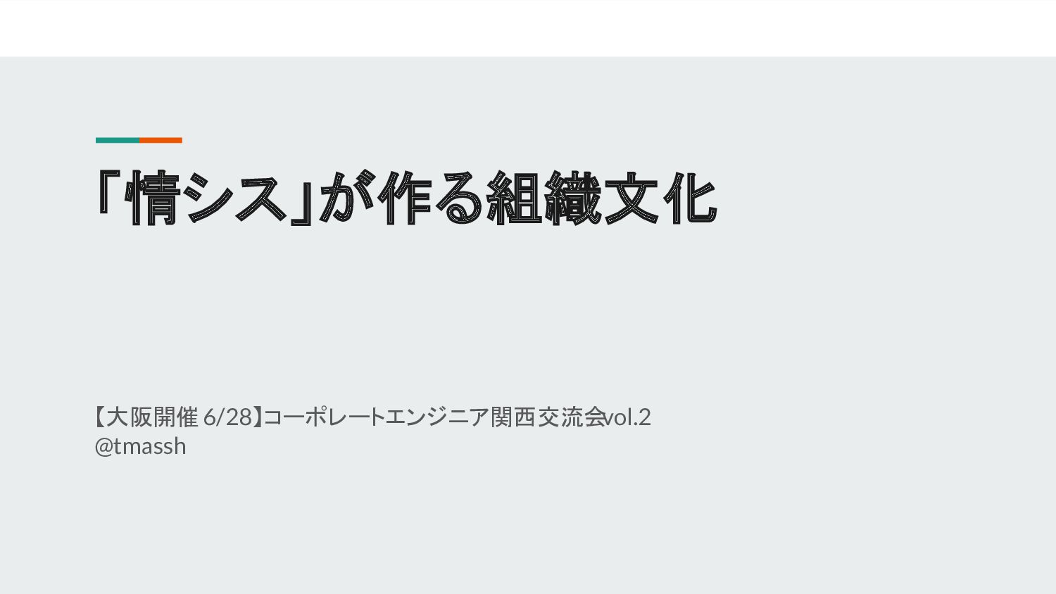 「情シス」が作る組織文化 【大阪開催 6/28】コーポレートエンジニア関西交流会 vol.2 @tmassh