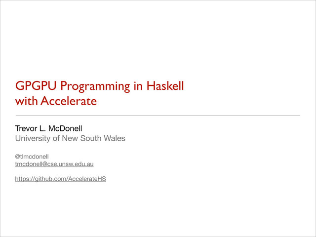 Companion workshop to the main talk: https://speakerdeck.com/tmcdonell/gpgpu-programming-in-haskell-with-accelerate