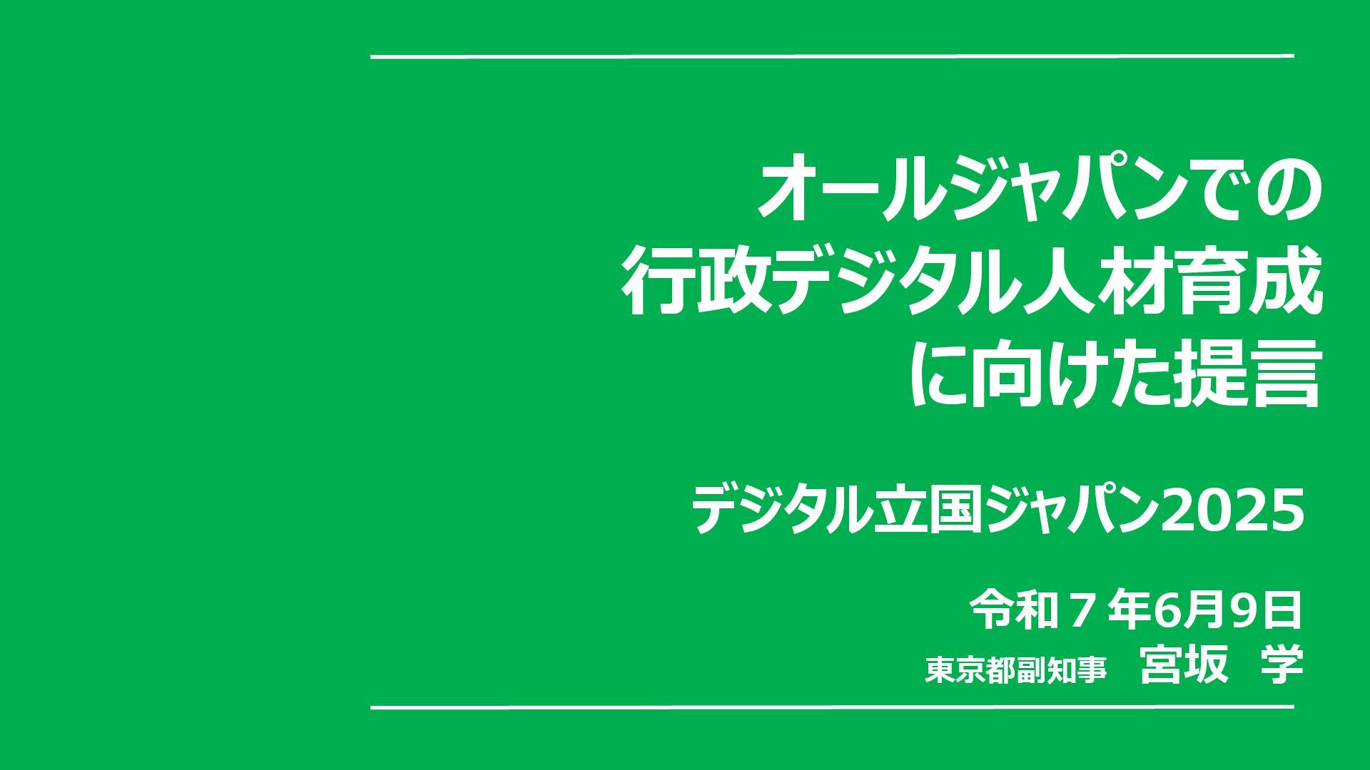 デジタル立国ジャパン2025 令和7年6月9日 東京都副知事 宮坂 学 オールジャパンでの 行政デジタル人材育成 に向けた提言