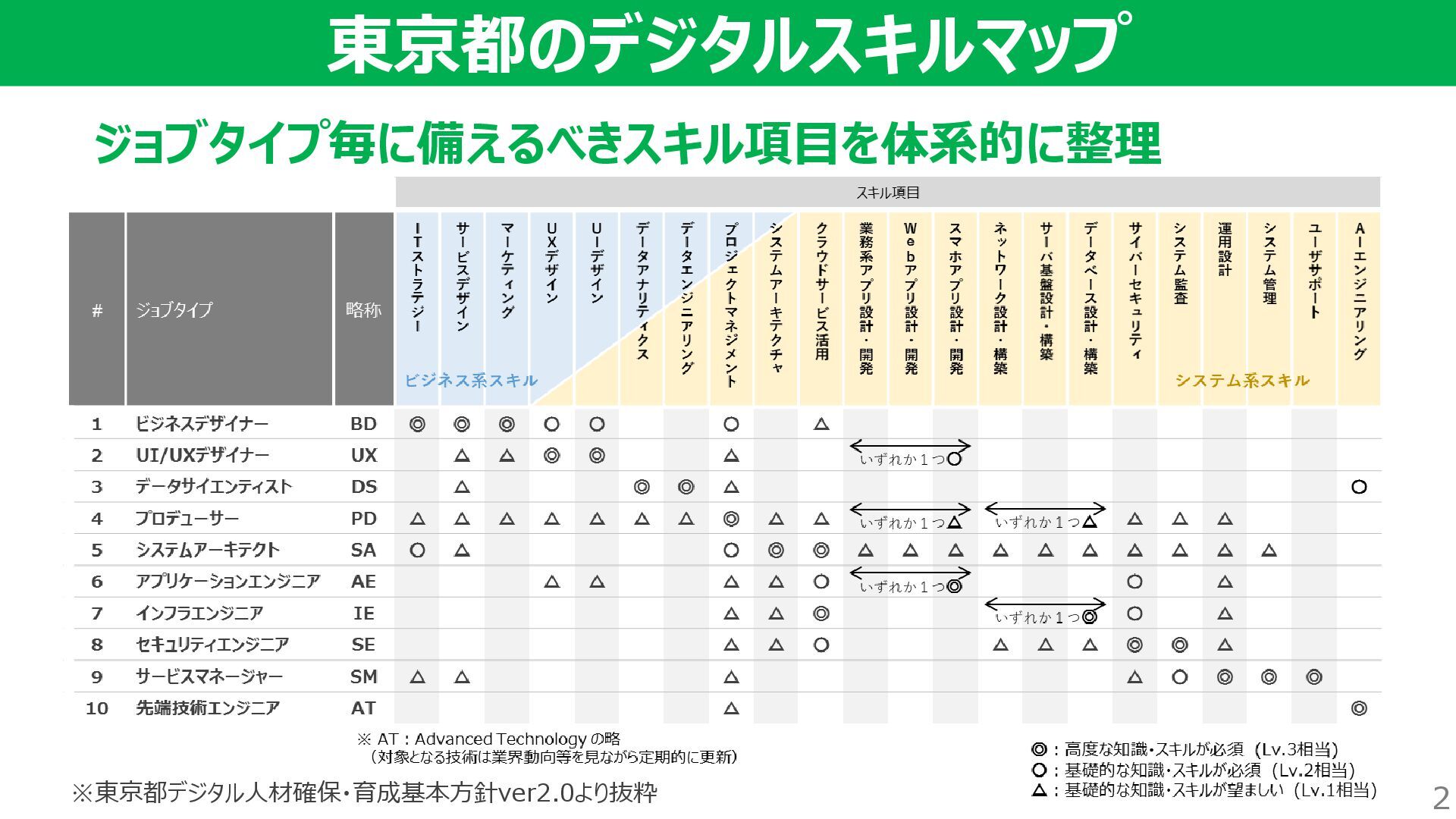 2 ジョブタイプ毎に備えるべきスキル項目を体系的に整理 東京都のデジタルスキルマップ ※東京都デジタル人材確保・育成基本方針ver2.0より抜粋