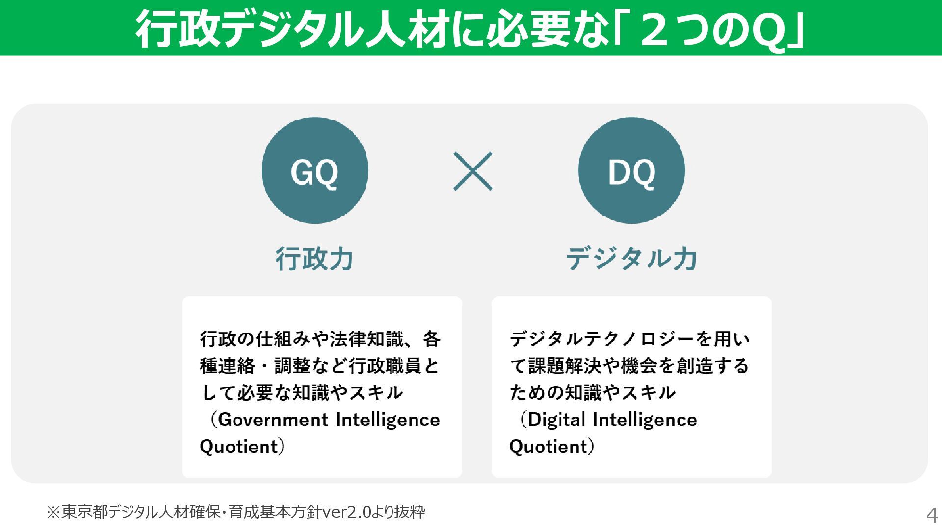 行政デジタル人材に必要な「2つのQ」 4 ※東京都デジタル人材確保・育成基本方針ver2.0より抜粋