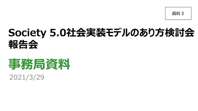 Society 5.0社会実装モデルのあり方検討会 報告会 事務局資料 2021/3/29 資料3