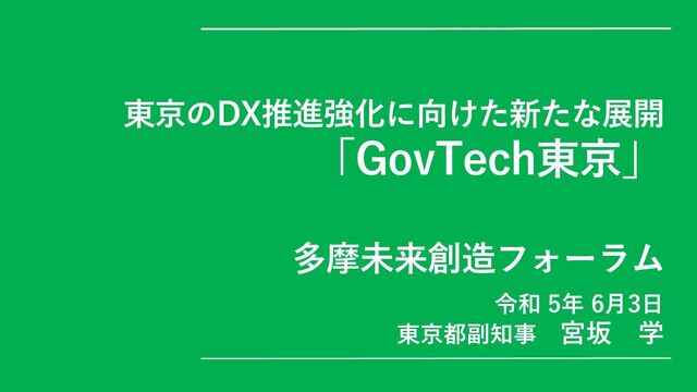 2018年(株)KADOKAWAグループCIO 2019年(株)KADOKAWA Connected代表取締役社長 2020年情報経営イノベーション専門職大学准教授(現) 2022年(株)三菱UFJ銀行CDTO補佐(現) 著書「世界一わかりやすいDX入門」「日本流DX」 はたなか ようすけ 畑中 洋亮 こども家庭庁参与 ほか 2008年(株)アップルジャパン 2013年(株)コトブキ(公共什器)取締役社長室長 2019年(一財)「あなたの医療」代表理事(現) 2020年厚労省健康局参与(コロナ対策・情報戦略) 2020年神奈川県医療危機対策統括官兼政策局顧問(現) 2023年こども家庭庁参与(こどもDX)(現) 2023年厚生労働省医政局参与(広域災害救急医療DX)(現) みやさか まなぶ 宮坂 学 東京都副知事 元 ヤフー株式会社取締役会長 まるやま まさよ 丸山 雅代 東京都デジタルサービス局次長 前 東京都デジタルサービス局総務部長 代表理事