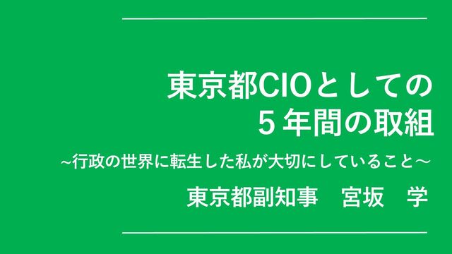 東京都CIOとしての 5年間の取組 東京都副知事 宮坂 学 ~行政の世界に転生した私が大切にしていること~