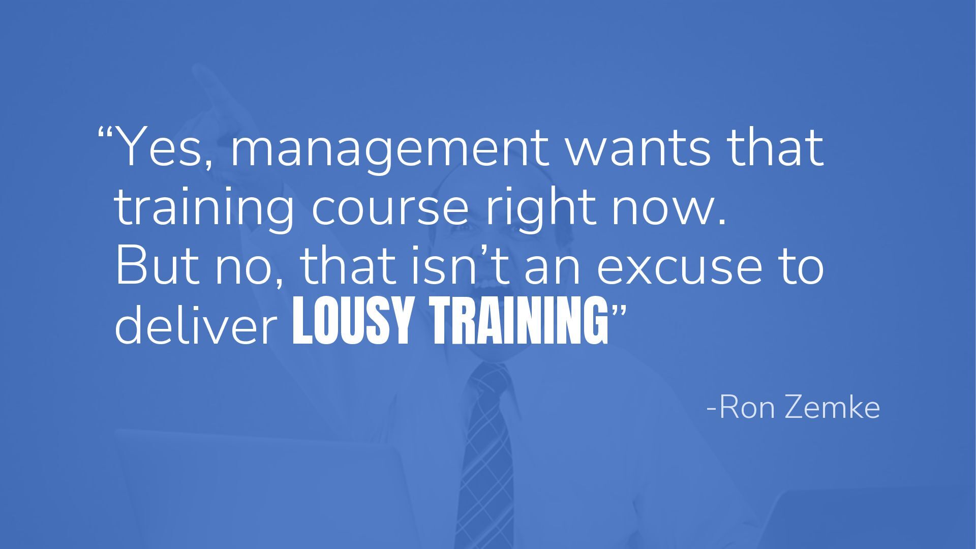 that isn’t an excuse to deliver LOUSY TRAINING” -Ron Zemke