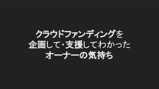 クラウドファンディングを 企画して・支援してわかった オーナーの気持ち