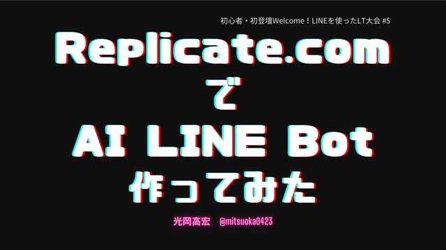 初心者・初登壇Welcome!LINEを使ったLT大会 #5 Replicate.com Replicate.com Replicate.com で で で AI LINE