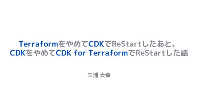TerraformをやめてCDKでReStartしたあと、 CDKをやめてCDK for TerraformでReStartした話 三浦 大幸
