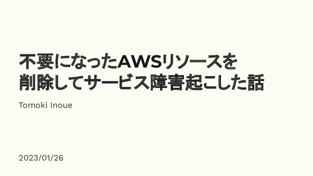 不要になったAWSリソースを 削除してサービス障害起こした話 Tomoki Inoue 2023/01/26